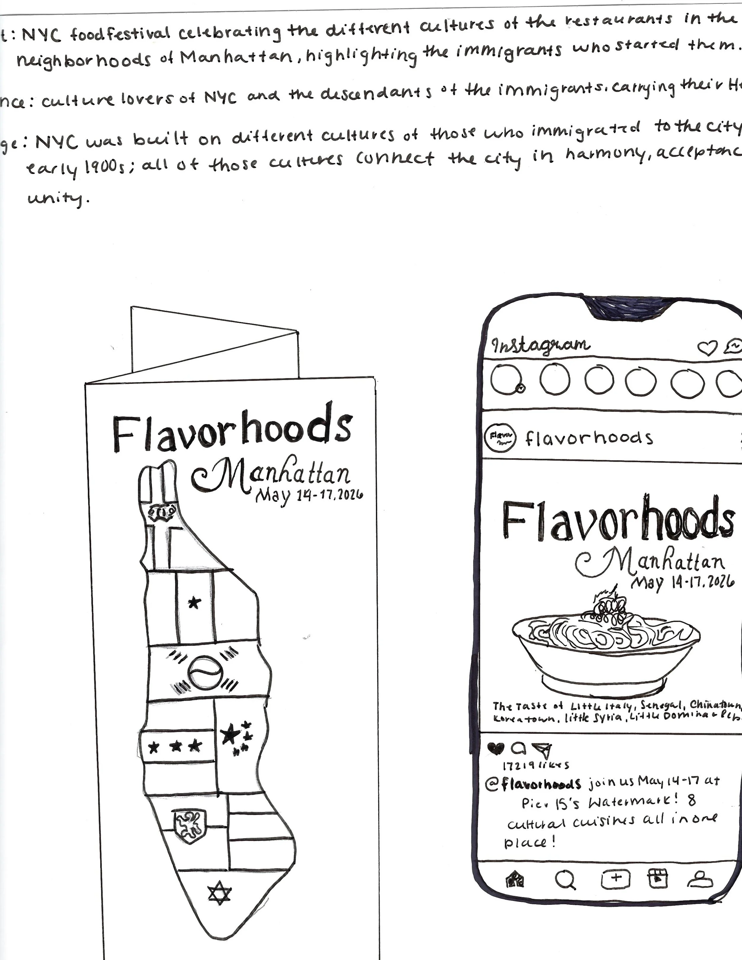 After more research, I decided that my final concept would represent a cultural food festival in Manhattan that celebrates the cultures that populated and cultured the city itself, by featuring authentic and historically driven restaurants.
